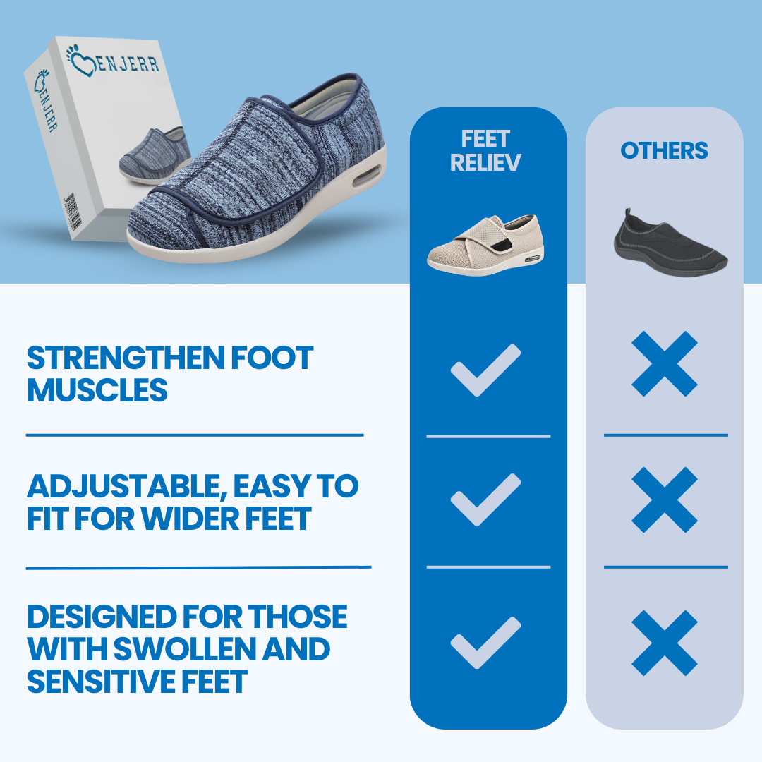 Wide Pain Relief Diabetic Shoes are equipped with leather arch supports, slip resistance and breathability, which ensures the ideal comfort. The premium arch supports with adjustable arch rises and multi-layered cushioning provide soft, cushioned support that can magically improve comfort in the knees, hips and lower back.