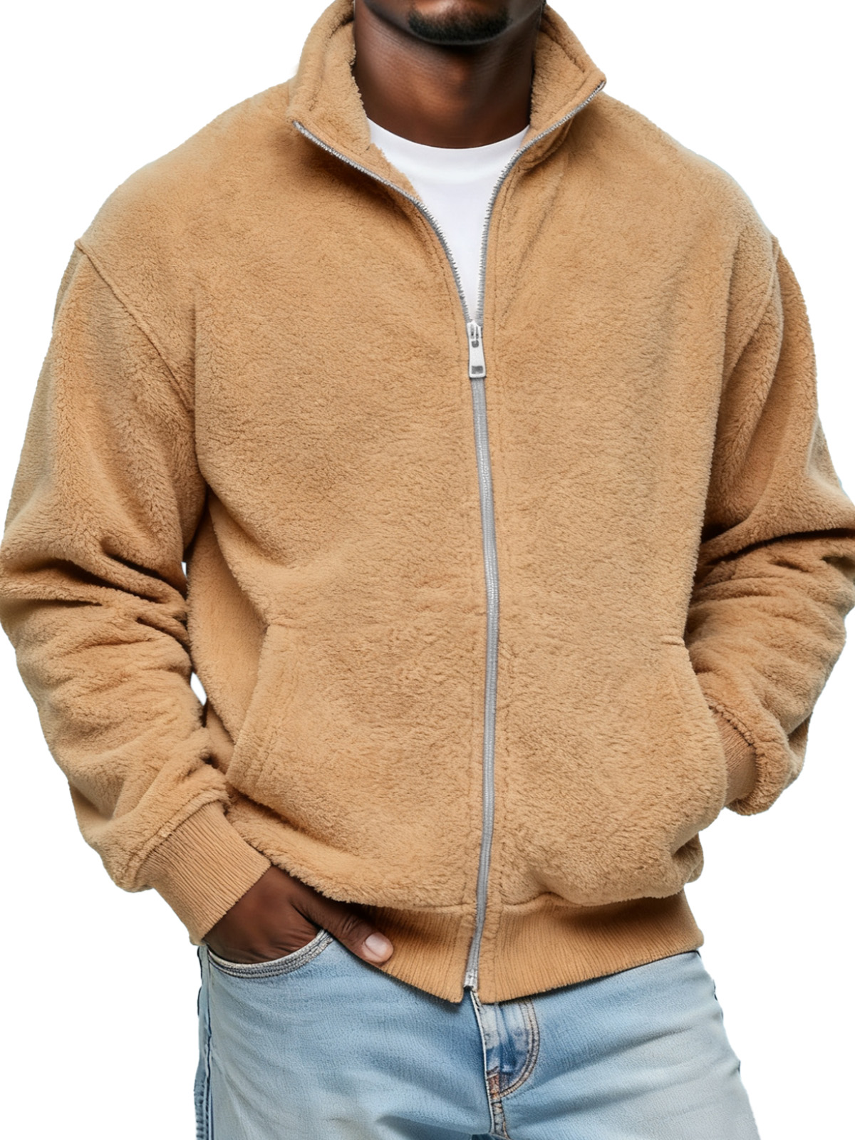 Winter Comfortable And Soft Double-sided Velvet Stand Collar Zipper Jacket