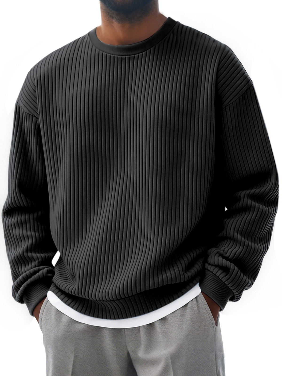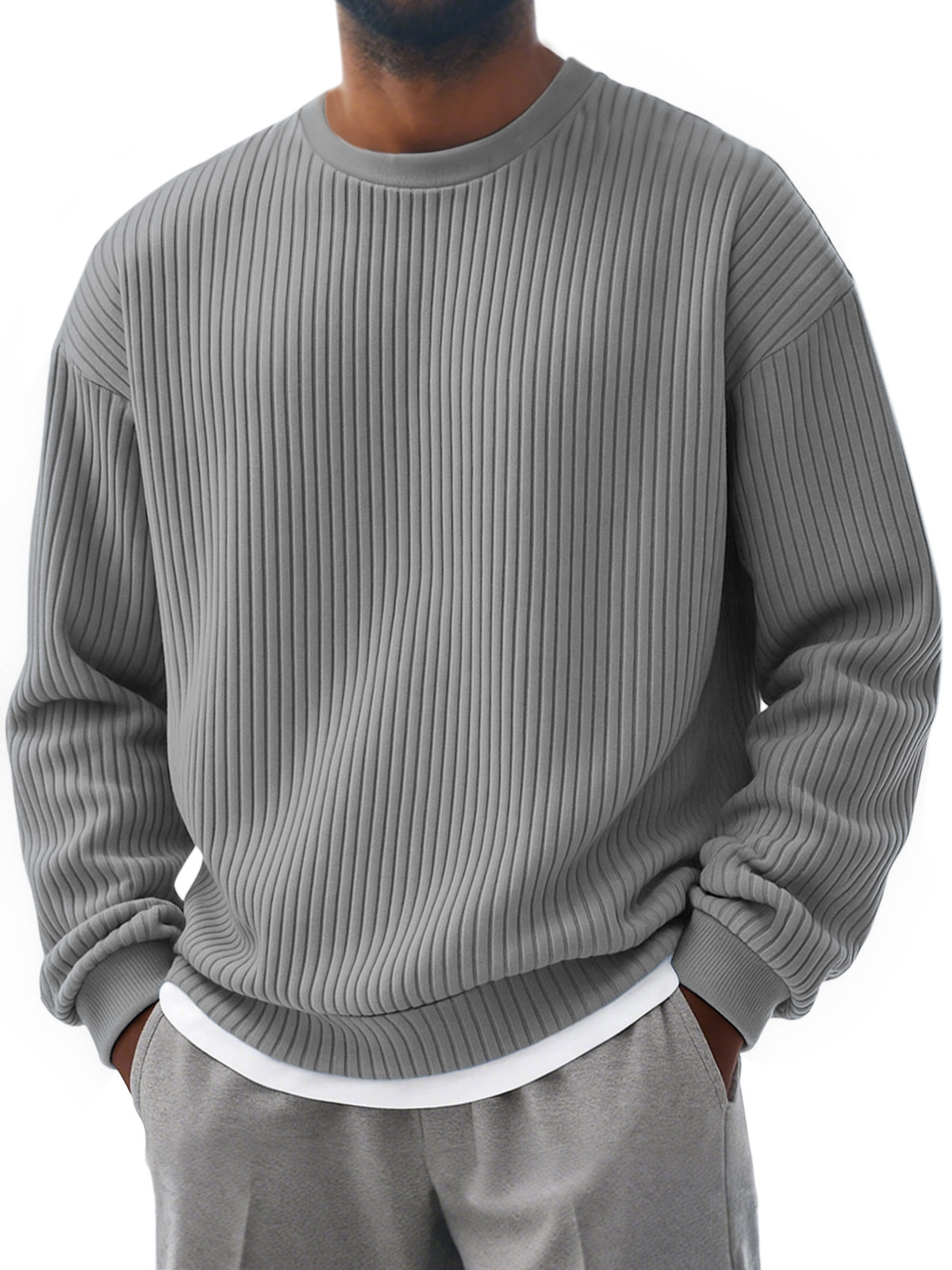Winter simple casual solid color cotton striped round neck long-sleeved sweatshirt