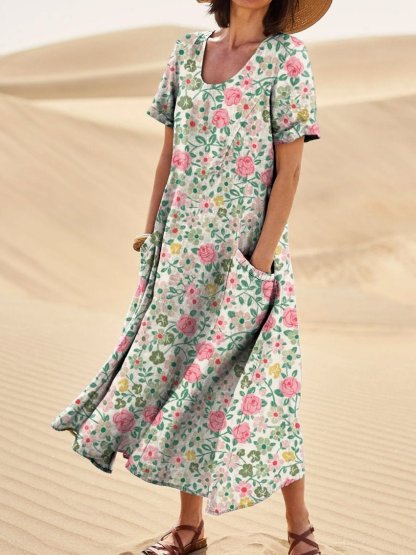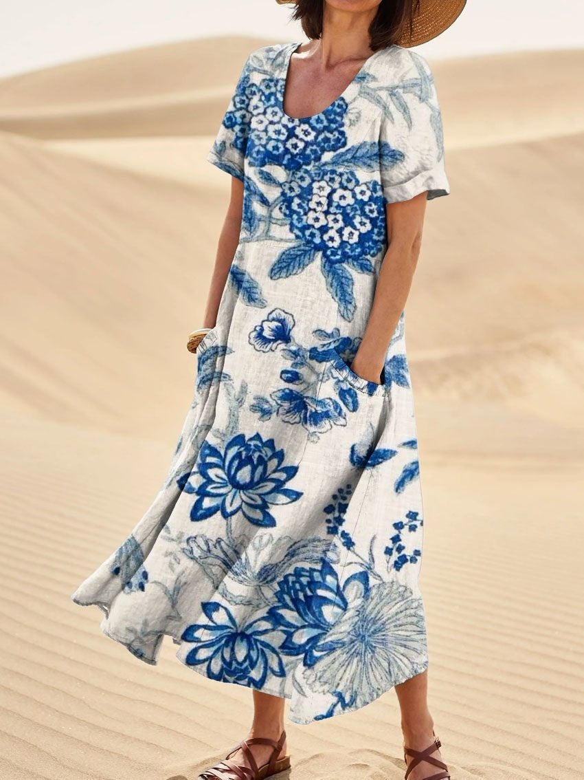 Women's Abstract Pattern Pocket Cotton Dress