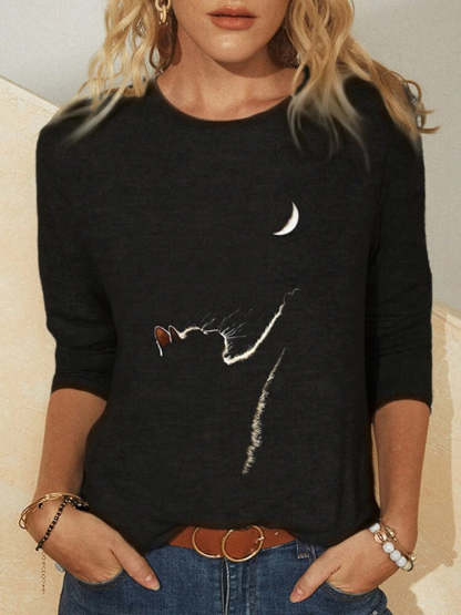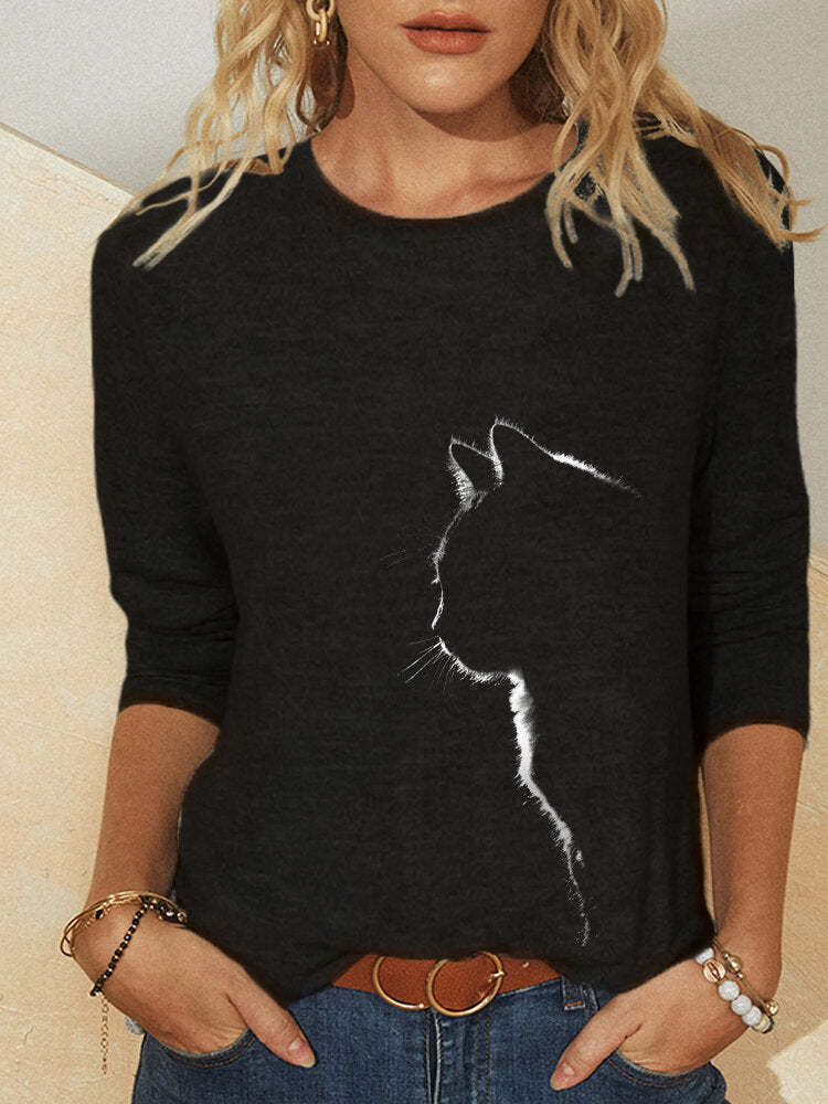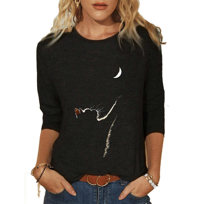 Women's Knitted Leisure Long-sleeved Animal Print Round Neck Casual T-shirt