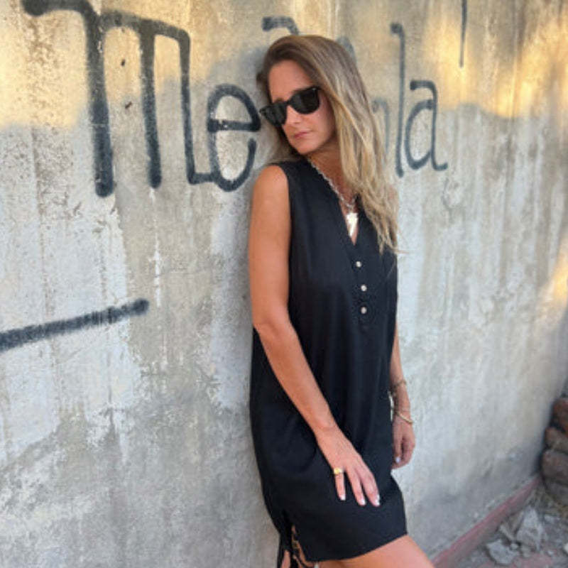 👗Early Summer New✨Women's Sleeveless Button Pocket V-Neck Dress